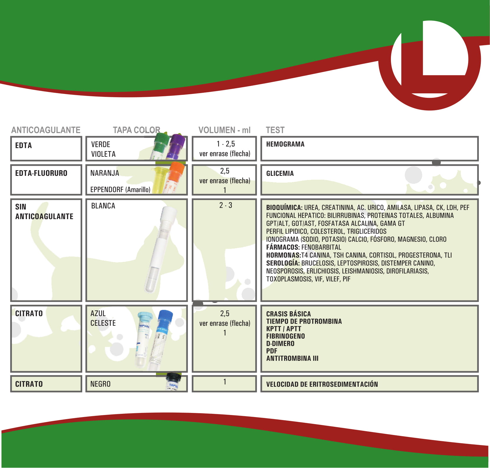 • Sangre, en caso de Enfermedad de las mucosas para realizar hemograma (en tubo para hemograma).